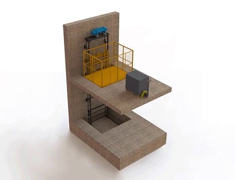 - Шахтные подъёмники. Изготавливаются под имеющиеся проёмы, возможно изготовление под проектируемый цех.